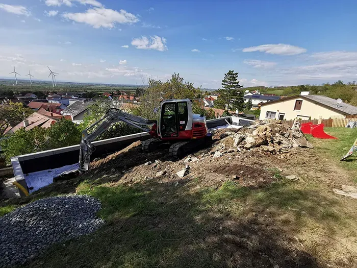 Da wir unter anderem beim Poolbau die All in One Variante anbieten (alles aus einer Hand) führen wir auch die Erd - und Abbrucharbeiten selbst durch. Diese bestehen aus: Aushub, Entsorgung, Unterbau bzw. Rollierung, Hinterfüllung, Humusierung etc.