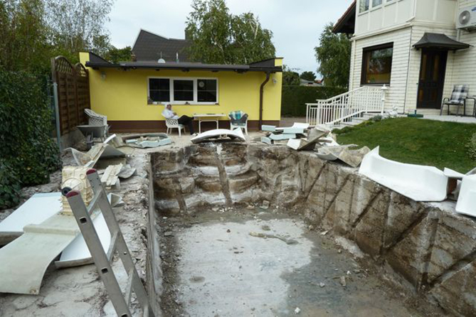 Pool zu einem neuem gemauerten Pool mit P 90 Steinen!